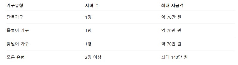 자녀장려금은 가구의 유형과 자녀 수에 따라 차등 지급됩니다.